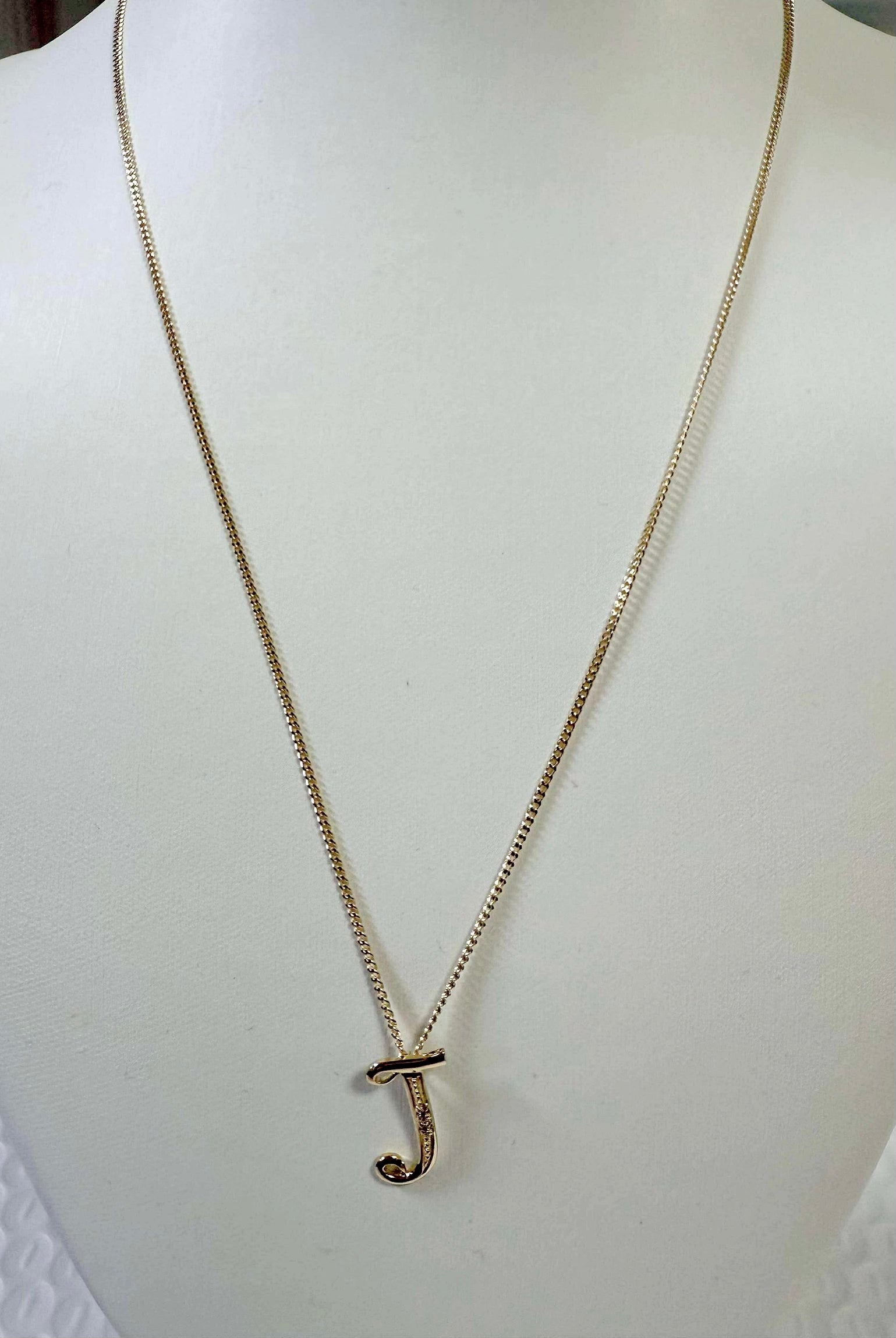 This K18 necklace features a stylish J initial pendant, adding a unique touch to any outfit. The rare style of this pendant is sure to elevate your look and make a statement. Crafted from high-quality materials, this necklace is a must-have for any fashion-forward individual.
