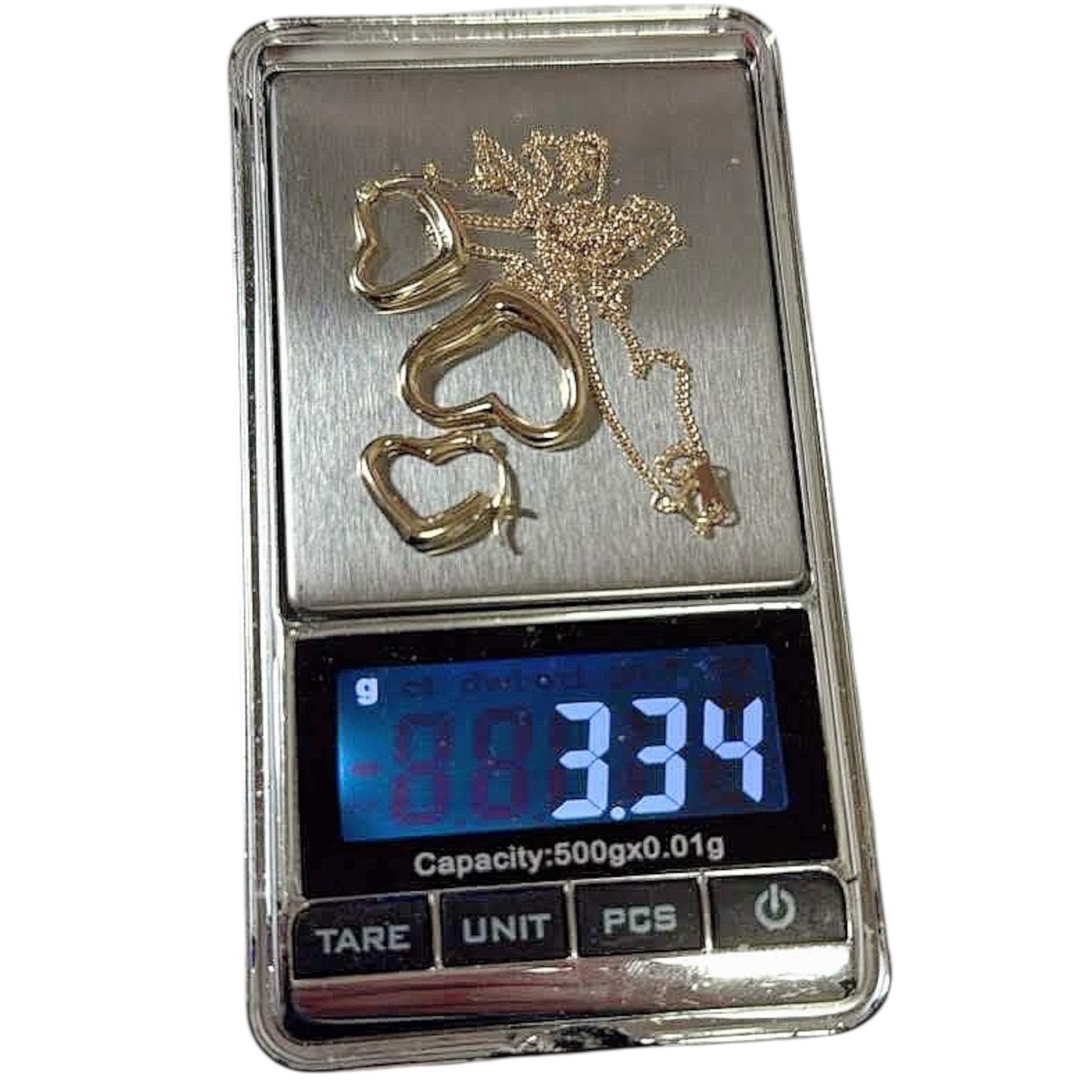K18 NECKLACE/ OPEN HEART PENDANT and EARRINGS