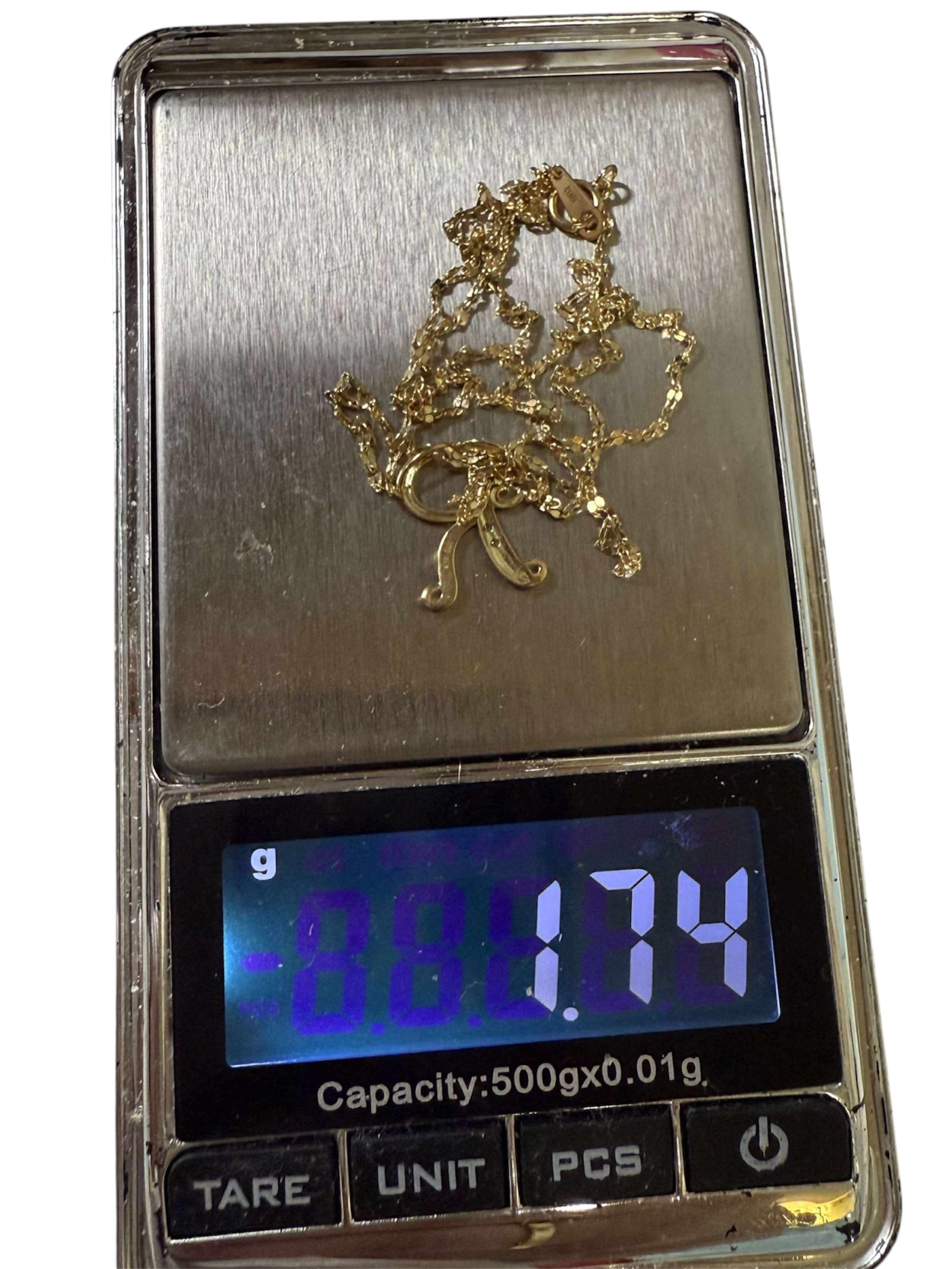 "Make a daring statement with our K18 Necklace/R Pendant! Elegant and uniquely crafted, this necklace is sure to catch attention and adds a bold touch to any outfit. Stand out from the crowd and embrace your fearless side with this stunning piece!"
